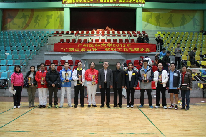 此次比赛由广州医药集团有限公司冠名赞助。比赛现场,前世界羽毛球冠军吴迪西女士、广州医药公司刘国伟副总裁和我校魏东海副校长、附三院陈?老师进行了精彩的表演赛。广州医药有限公司于景辉总裁、刘允坚副总裁到比赛现场观摩并为获奖队伍颁发奖杯。