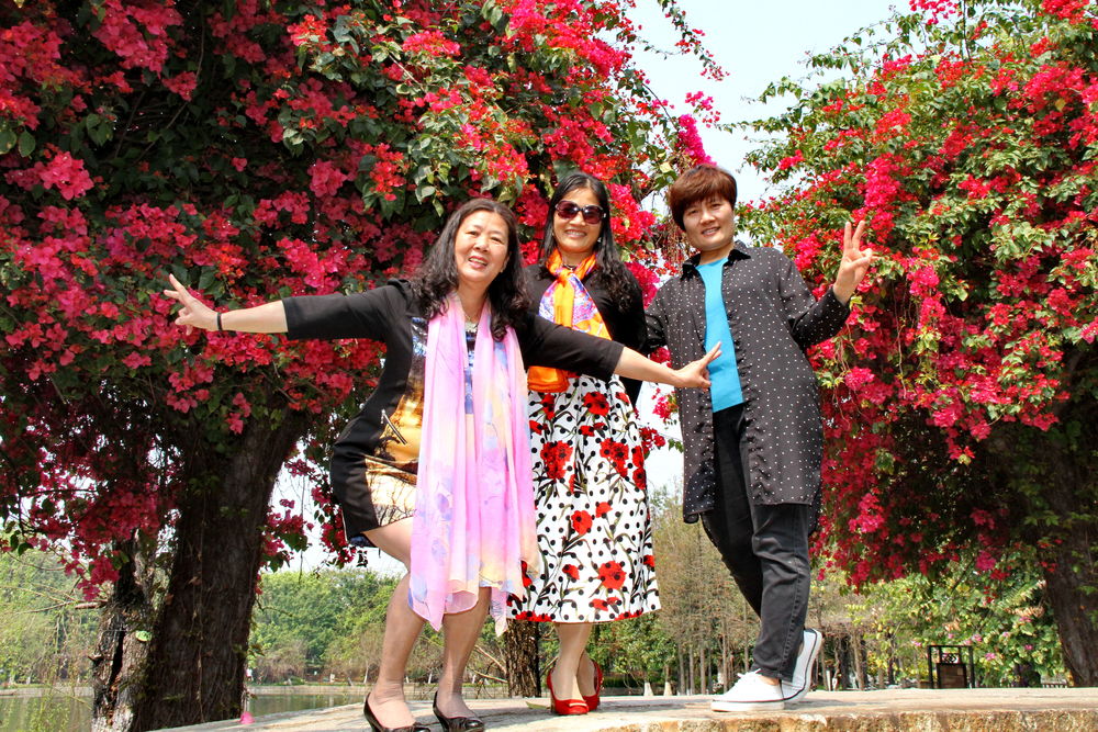 百花洲公园,园内繁花似锦,各种花卉竞相绽放。三八节期间阳光明媚,女教职工们漫步在花海间,赏花拍照,放松心情,感受春天的气息,享受节日的快乐。