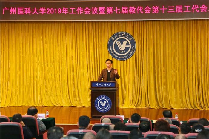 他指出,2019年的工作主要从十大方面推进:重点专项工作;加强党的全面领导,推进全面从严治党向纵深发展;围绕人才培养目标,切实提高教育教学质量;强化顶层设计和协同管理,推动学科建设和科研工作再上新台阶;积极推进人事制度改革,加大人才引进和培育力度;加强学生教育管理服务,落实立德树人根本任务;坚持开放办学,稳步推进对外合作与交流;坚持外拓内炼,努力打造高水平附属医院;完善行政管理运行机制,加强公共服务体系建设;加强和改进群团工作,构建和谐校园。其中,重点专项工作为全面加强党的建设、紧抓粤港澳大湾区建设的历史机遇谋划学校发展、全力提升本科教育质量、加快番禺校区二期建设步伐、完成附属医院班子换届和中层干部调整选任工作。