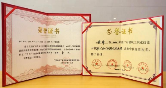 岁末年初,喜报频传。在广东省多部门联合举办的2020年广东省职工“五小”创新成果竞赛中,我校附二院骨科黄帅团队的《miR-582在制备前列腺癌骨转移诊断、预后试剂盒及药物中的应用》和附三院伍子英团队的《一种股骨颈骨折术用复位牵引器》分别获得大赛的金奖和优秀奖,另外有三个项目获得创新成果奖,学校荣获优秀组织奖。这是一场围绕产业产品升级换代的“小发明、小创造、小革新、小设计、小建议”,解决制约发展的热点、难点和关键问题的劳动技能竞赛,在广州市第二工人文化宫体育馆举行。