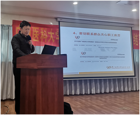方灿辉主席在讲话中表示,感谢学校各级工会组织、工会干部对学校工会工作、“和谐广医”建设付出的辛劳和努力。他指出,在特殊的2020年,“广医全体工会会员以饱满的热情,全情投入,做好工作。”他对学校工会工作取得的成绩、获得上级的肯定以及学校教职工的认可表示赞许和满意。